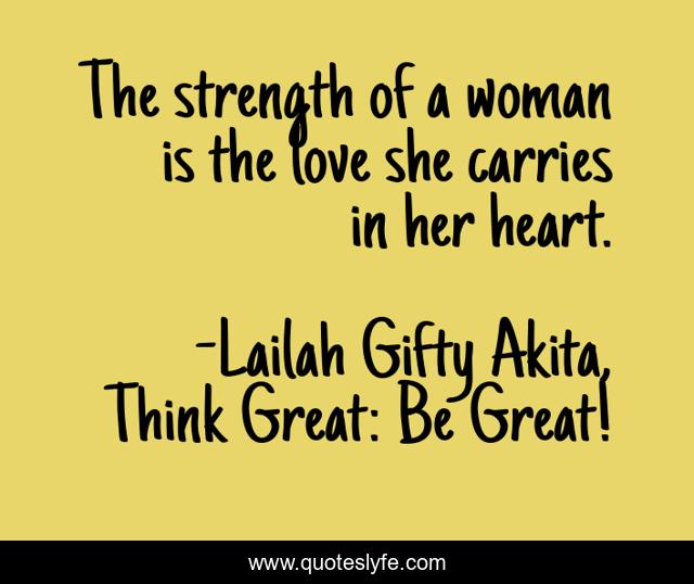 "Lailah Gifty Akita, Think Great: Be Great! Quotes." Quoteslyfe.com, 2025. Tue. 09 Dec. 2025. <https://www.quoteslyfe.com/quote/The-strength-of-a-woman-is-the-77254>.