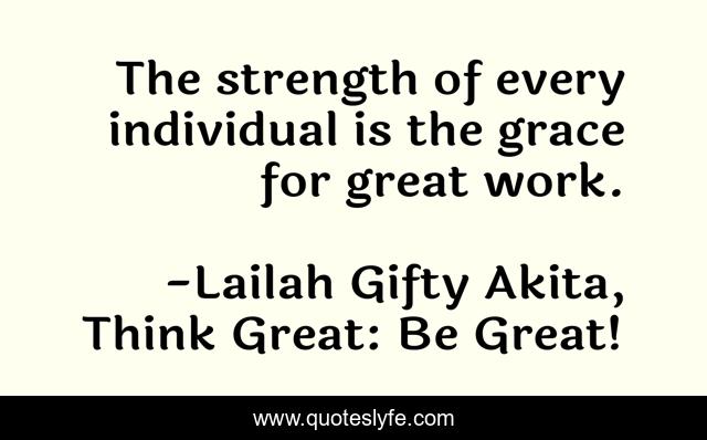 "Lailah Gifty Akita, Think Great: Be Great! Quotes." Quoteslyfe.com, 2025. Fri. 05 Dec. 2025. <https://www.quoteslyfe.com/quote/The-strength-of-every-individual-is-the-32307>.