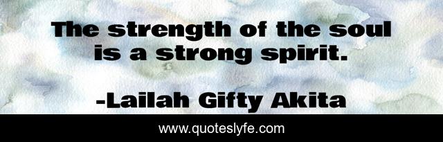 This page presents the quote "The strength of the soul is a strong spirit.". Author of this quote is Lailah Gifty Akita. This quote is about strength, soul, spirit,.