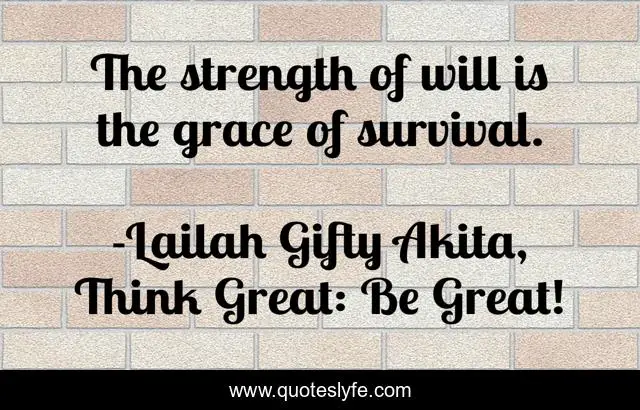 "Lailah Gifty Akita, Think Great: Be Great! Quotes." Quoteslyfe.com, 2025. Tue. 09 Dec. 2025. <https://www.quoteslyfe.com/quote/The-strength-of-will-is-the-grace-91721>.