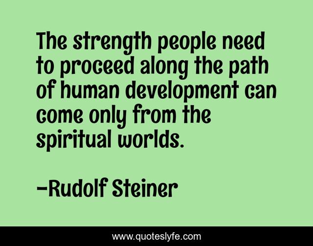 This page presents the quote "The strength people need to proceed along the path of human development can come only from the spiritual worlds.". Author of this quote is Rudolf Steiner. This quote is about path, spiritual, people,.