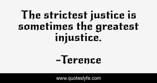 This page presents the quote "The strictest justice is sometimes the greatest injustice.". Author of this quote is Terence. .