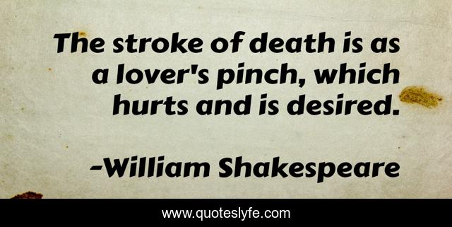 This page presents the quote "The stroke of death is as a lover's pinch, which hurts and is desired.". Author of this quote is William Shakespeare. This quote is about lover, which, hurts,.