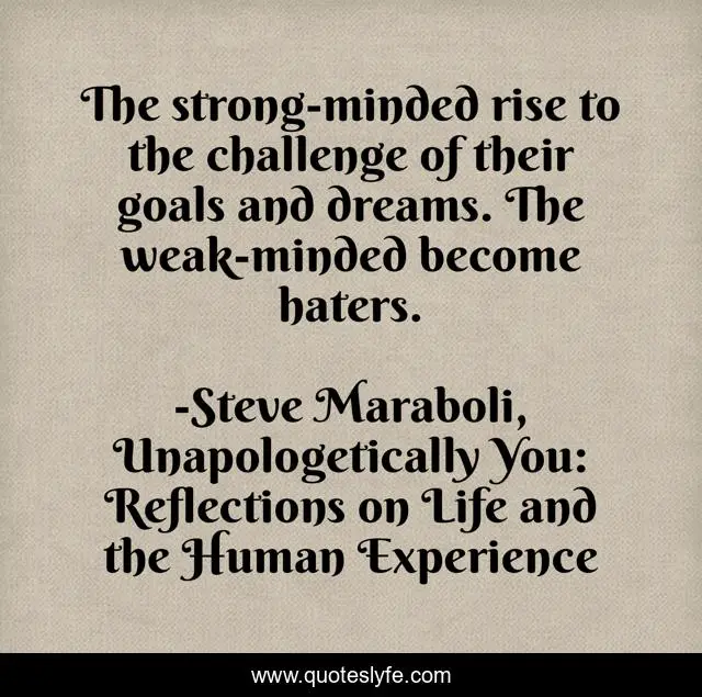 "Steve Maraboli, Unapologetically You: Reflections on Life and the Human Experience Quotes." Quoteslyfe.com, 2025. Fri. 05 Dec. 2025. <https://www.quoteslyfe.com/quote/The-strong-minded-rise-to-the-challenge-3458>.