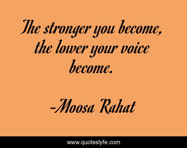 This page presents the quote "The stronger you become, the lower your voice become.". Author of this quote is Moosa Rahat. This quote is about insiprational, voice, stronger, humble,.