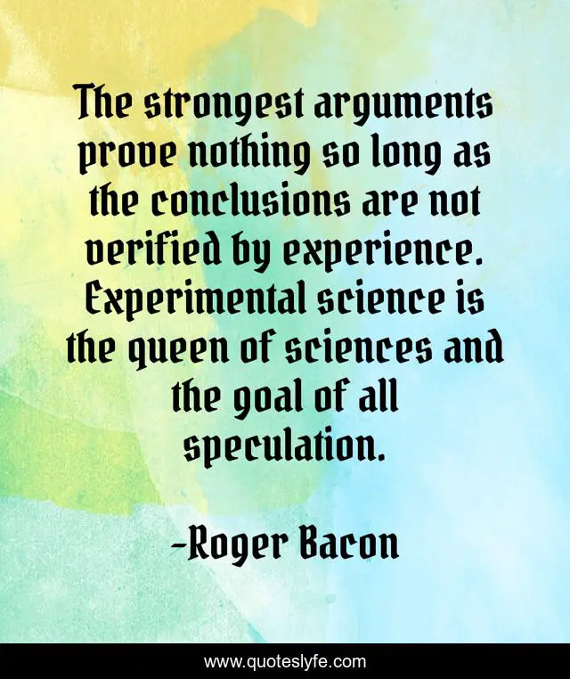 This page presents the quote "The strongest arguments prove nothing so long as the conclusions are not verified by experience. Experimental science is the queen of sciences and the goal of all speculation.". Author of this quote is Roger Bacon. This quote is about queen, goal, experience,.