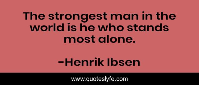 This page presents the quote "The strongest man in the world is he who stands most alone.". Author of this quote is Henrik Ibsen. This quote is about world, man, most,.