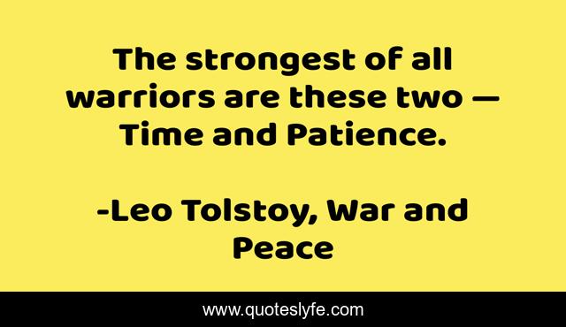 This page presents the quote "The strongest of all warriors are these two — Time and Patience.". Author of this quote is Leo Tolstoy, War and Peace. This quote is about patience, time,.