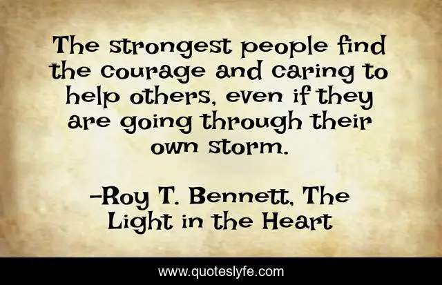 This page presents the quote "The strongest people find the courage and caring to help others, even if they are going through their own storm.". Author of this quote is Roy T. Bennett, The Light in the Heart. This quote is about motivation, inspire, optimistic, inspirational-life, life-and-living, living, inspiring, positive, positive-thinking,.