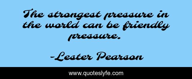This page presents the quote "The strongest pressure in the world can be friendly pressure.". Author of this quote is Lester Pearson. This quote is about rule, government,.