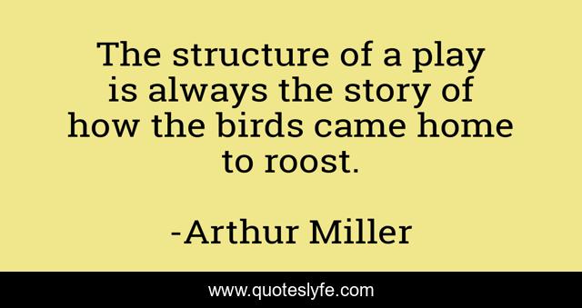 This page presents the quote "The structure of a play is always the story of how the birds came home to roost.". Author of this quote is Arthur Miller. This quote is about sanity, insanity,.