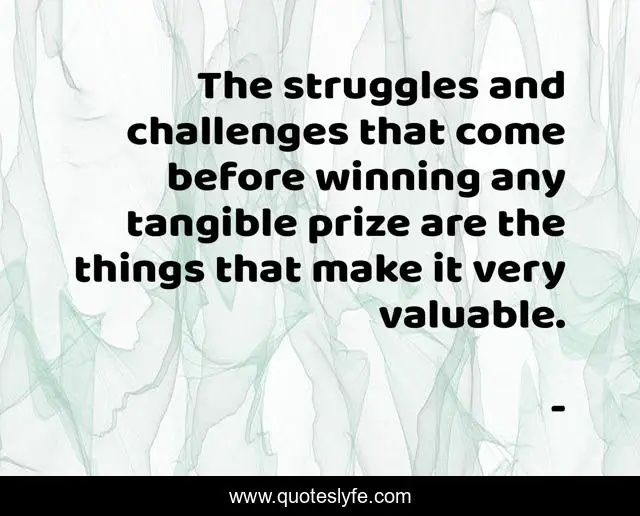 The struggles and challenges that come before winning any tangible prize are the things that make it very valuable.