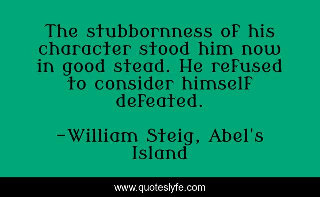 This page presents the quote "The stubbornness of his character stood him now in good stead. He refused to consider himself defeated.". Author of this quote is William Steig, Abel's Island. This quote is about stubbornness, character,.