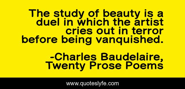 "Charles Baudelaire, Twenty Prose Poems Quotes." Quoteslyfe.com, 2025. Sat. 06 Dec. 2025. <https://www.quoteslyfe.com/quote/The-study-of-beauty-is-a-duel-60750>.