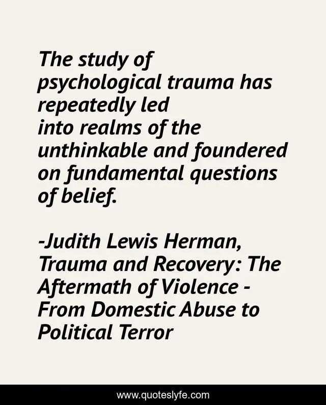"Judith Lewis Herman, Trauma and Recovery: The Aftermath of Violence - From Domestic Abuse to Political Terror Quotes." Quoteslyfe.com, 2025. Fri. 05 Dec. 2025. <https://www.quoteslyfe.com/quote/The-study-of-psychological-trauma-has-repeatedly-103340>.