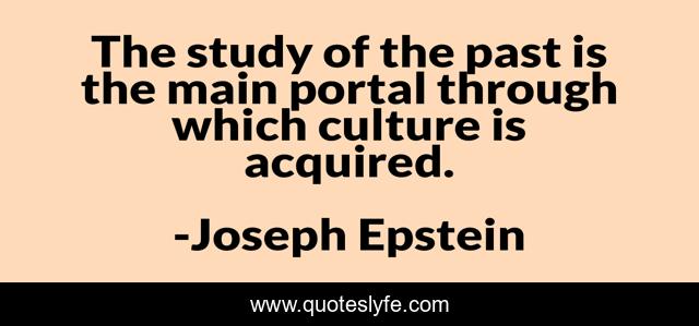 This page presents the quote "The study of the past is the main portal through which culture is acquired.". Author of this quote is Joseph Epstein. This quote is about heritage, history,.