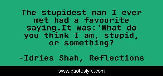 This page presents the quote "The stupidest man I ever met had a favourite saying.It was:'What do you think I am, stupid, or something?". Author of this quote is Idries Shah, Reflections. This quote is about i-am, essence, stupidity, sayings,.
