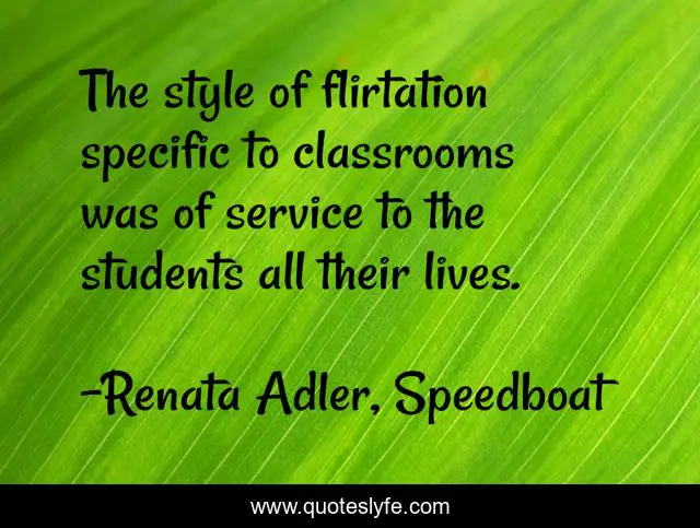 This page presents the quote "The style of flirtation specific to classrooms was of service to the students all their lives.". Author of this quote is Renata Adler, Speedboat. .