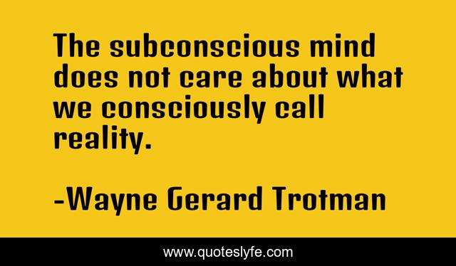 This page presents the quote "The subconscious mind does not care about what we consciously call reality.". Author of this quote is Wayne Gerard Trotman. This quote is about subconscious-mind, conscious-awareness, awareness, subconscious-mind-power, reality,.