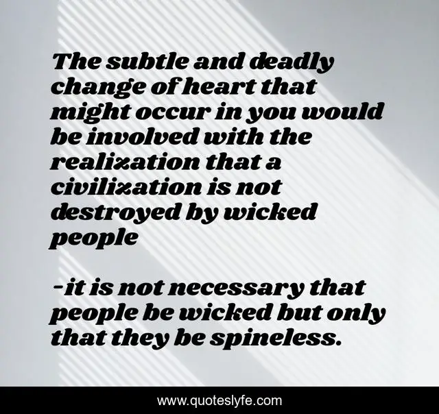 "it is not necessary that people be wicked but only that they be spineless. Quotes." Quoteslyfe.com, 2025. Fri. 05 Dec. 2025. <https://www.quoteslyfe.com/quote/The-subtle-and-deadly-change-of-heart-154394>.