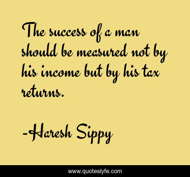 This page presents the quote "The success of a man should be measured not by his income but by his tax returns.". Author of this quote is Haresh Sippy. .