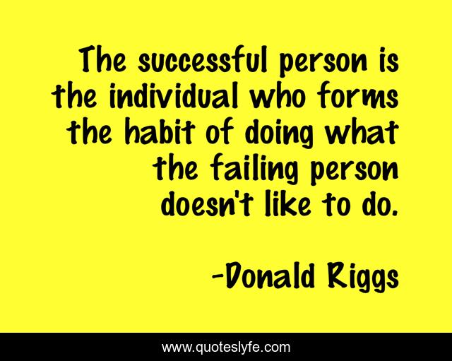 This page presents the quote "The successful person is the individual who forms the habit of doing what the failing person doesn't like to do.". Author of this quote is Donald Riggs. .