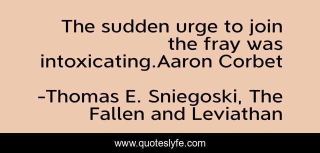 This page presents the quote "The sudden urge to join the fray was intoxicating.Aaron Corbet". Author of this quote is Thomas E. Sniegoski, The Fallen and Leviathan. .