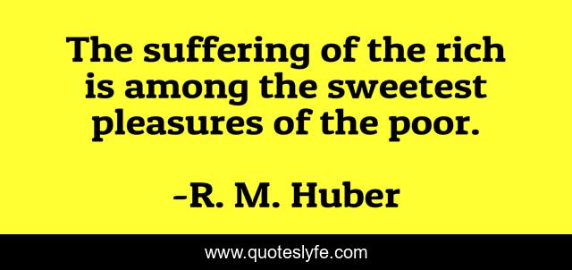 This page presents the quote "The suffering of the rich is among the sweetest pleasures of the poor.". Author of this quote is R. M. Huber. .