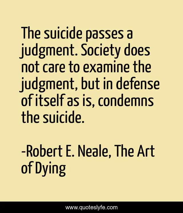 "Robert E. Neale, The Art of Dying Quotes." Quoteslyfe.com, 2025. Sat. 06 Dec. 2025. <https://www.quoteslyfe.com/quote/The-suicide-passes-a-judgment-Society-does-102278>.