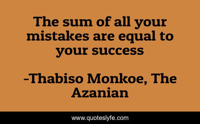 This page presents the quote "The sum of all your mistakes are equal to your success". Author of this quote is Thabiso Monkoe, The Azanian. This quote is about positive, confidence, motivational, optimistic,.