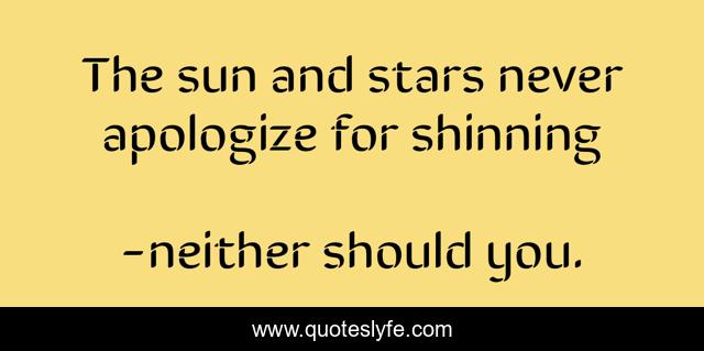 This page presents the quote "The sun and stars never apologize for shinning". Author of this quote is neither should you.. .