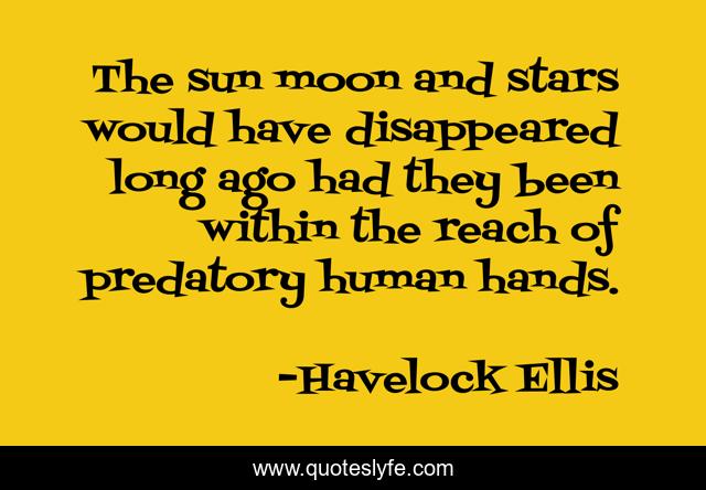 This page presents the quote "The sun moon and stars would have disappeared long ago had they been within the reach of predatory human hands.". Author of this quote is Havelock Ellis. .