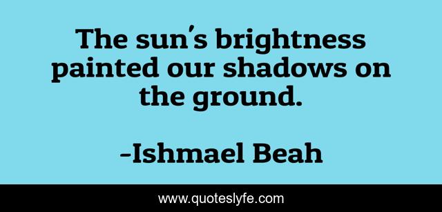 This page presents the quote "The sun's brightness painted our shadows on the ground.". Author of this quote is Ishmael Beah. This quote is about boy-soldier, sun, shadow,.