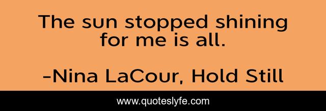 "Nina LaCour, Hold Still Quotes." Quoteslyfe.com, 2025. Mon. 08 Dec. 2025. <https://www.quoteslyfe.com/quote/The-sun-stopped-shining-for-me-is-113661>.
