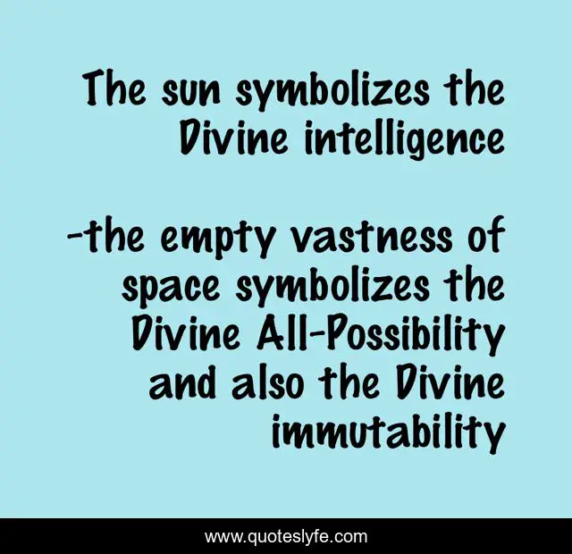 "the empty vastness of space symbolizes the Divine All-Possibility and also the Divine immutability Quotes." Quoteslyfe.com, 2025. Sat. 06 Dec. 2025. <https://www.quoteslyfe.com/quote/The-sun-symbolizes-the-Divine-intelligence-8292>.