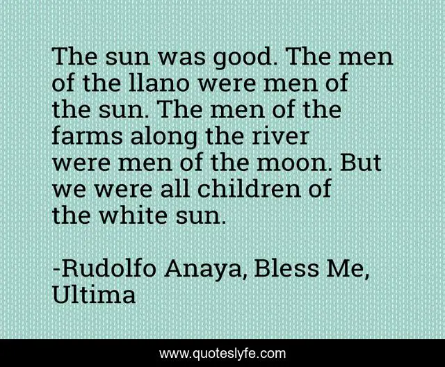 "Rudolfo Anaya, Bless Me, Ultima Quotes." Quoteslyfe.com, 2025. Sat. 06 Dec. 2025. <https://www.quoteslyfe.com/quote/The-sun-was-good-The-men-of-127424>.