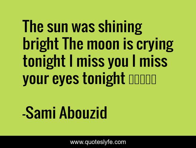This page presents the quote "The sun was shining bright The moon is crying tonight I miss you I miss your eyes tonight ……………". Author of this quote is Sami Abouzid. This quote is about love, affection,.