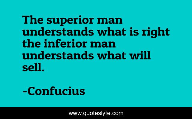 This page presents the quote "The superior man understands what is right the inferior man understands what will sell.". Author of this quote is Confucius. This quote is about sell, right, man,.