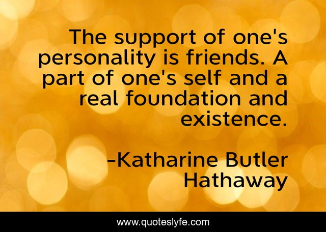 This page presents the quote "The support of one's personality is friends. A part of one's self and a real foundation and existence.". Author of this quote is Katharine Butler Hathaway. .