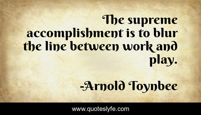 This page presents the quote "The supreme accomplishment is to blur the line between work and play.". Author of this quote is Arnold Toynbee. .