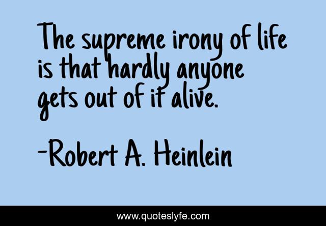 This page presents the quote "The supreme irony of life is that hardly anyone gets out of it alive.". Author of this quote is Robert A. Heinlein. .