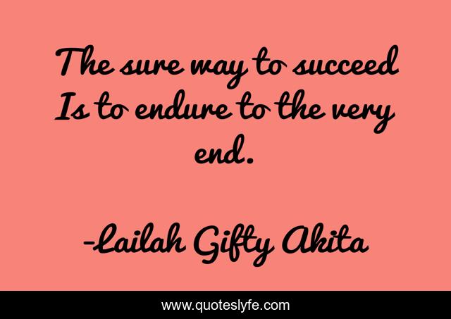 This page presents the quote "The sure way to succeed Is to endure to the very end.". Author of this quote is Lailah Gifty Akita. This quote is about inner-strength, dont-quit, wise-words, success, endurance,.