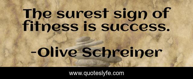 This page presents the quote "The surest sign of fitness is success.". Author of this quote is Olive Schreiner. This quote is about self, knowledge,.