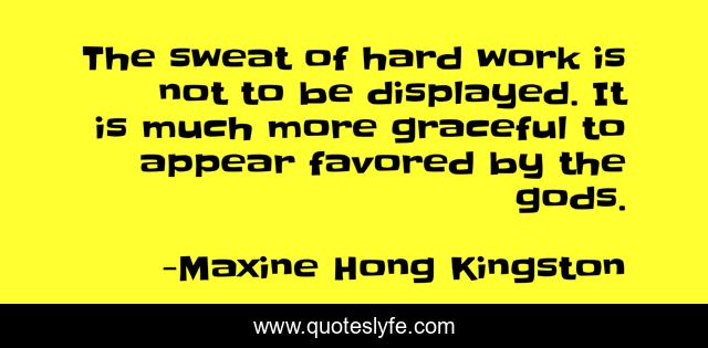 This page presents the quote "The sweat of hard work is not to be displayed. It is much more graceful to appear favored by the gods.". Author of this quote is Maxine Hong Kingston. This quote is about confidence, motivational, positive, work, optimistic, inspirational, enthusiasm,.