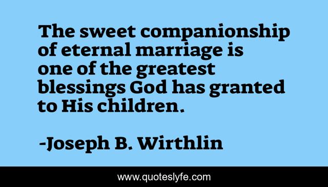 This page presents the quote "The sweet companionship of eternal marriage is one of the greatest blessings God has granted to His children.". Author of this quote is Joseph B. Wirthlin. This quote is about god, blessings, children,.