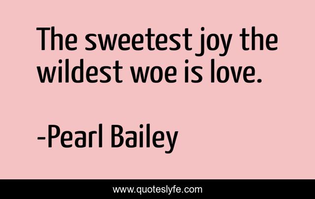 This page presents the quote "The sweetest joy the wildest woe is love.". Author of this quote is Pearl Bailey. .