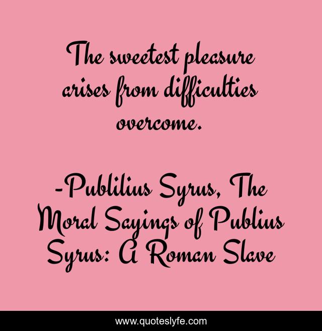"Publilius Syrus, The Moral Sayings of Publius Syrus: A Roman Slave Quotes." Quoteslyfe.com, 2025. Sat. 06 Dec. 2025. <https://www.quoteslyfe.com/quote/The-sweetest-pleasure-arises-from-difficulties-overcome-227137>.