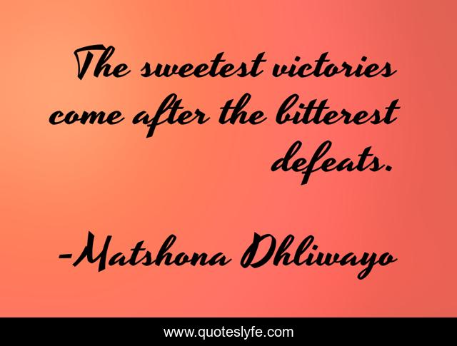 "Matshona Dhliwayo Quotes." Quoteslyfe.com, 2025. Tue. 09 Dec. 2025. <https://www.quoteslyfe.com/quote/The-sweetest-victories-come-after-the-bitterest-83515>.