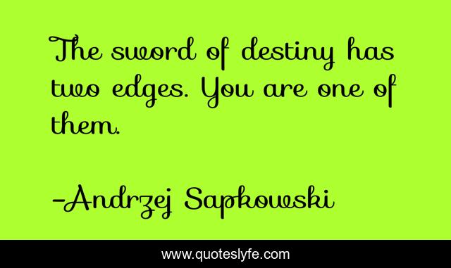 This page presents the quote "The sword of destiny has two edges. You are one of them.". Author of this quote is Andrzej Sapkowski. .