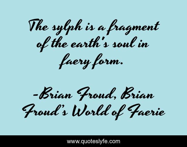 This page presents the quote "The sylph is a fragment of the earth's soul in faery form.". Author of this quote is Brian Froud, Brian Froud’s World of Faerie. This quote is about earth, faerie, sylph,.